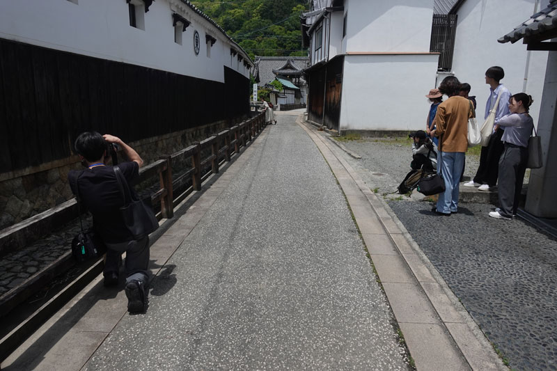 このあと、班に分かれて、重伝建地区に含まれる下川原町の町並みがどのように変化したのか、高度経済成長期の住宅地図を用いて比較したり、古い醤油蔵が残る用水路沿いで景観の発信に向けた試験撮影を行いました。